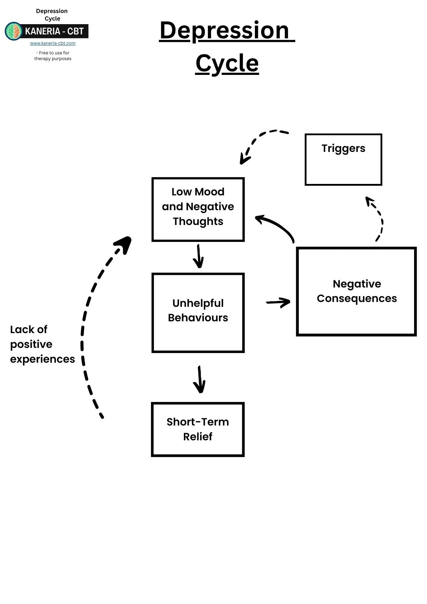 Short-Term Relief: When low, these tasks feel hard, therefore we get a sense of temporary relief from not having to do the activity. However, this is often quickly followed by guilt, feeling lower or self-criticism for not doing the task. This lowers mood and starts the cycle again. Furthermore, avoiding activities also stops us from having positive experiences which would help counteract the low mood.