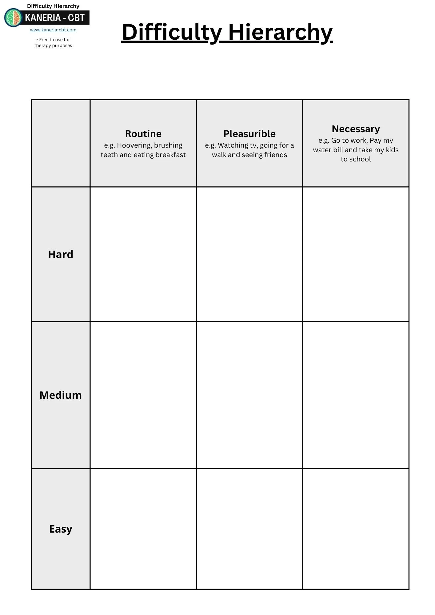 The patient should ideally have a good mixture of routine, pleasurable and necessary in each difficulty category.