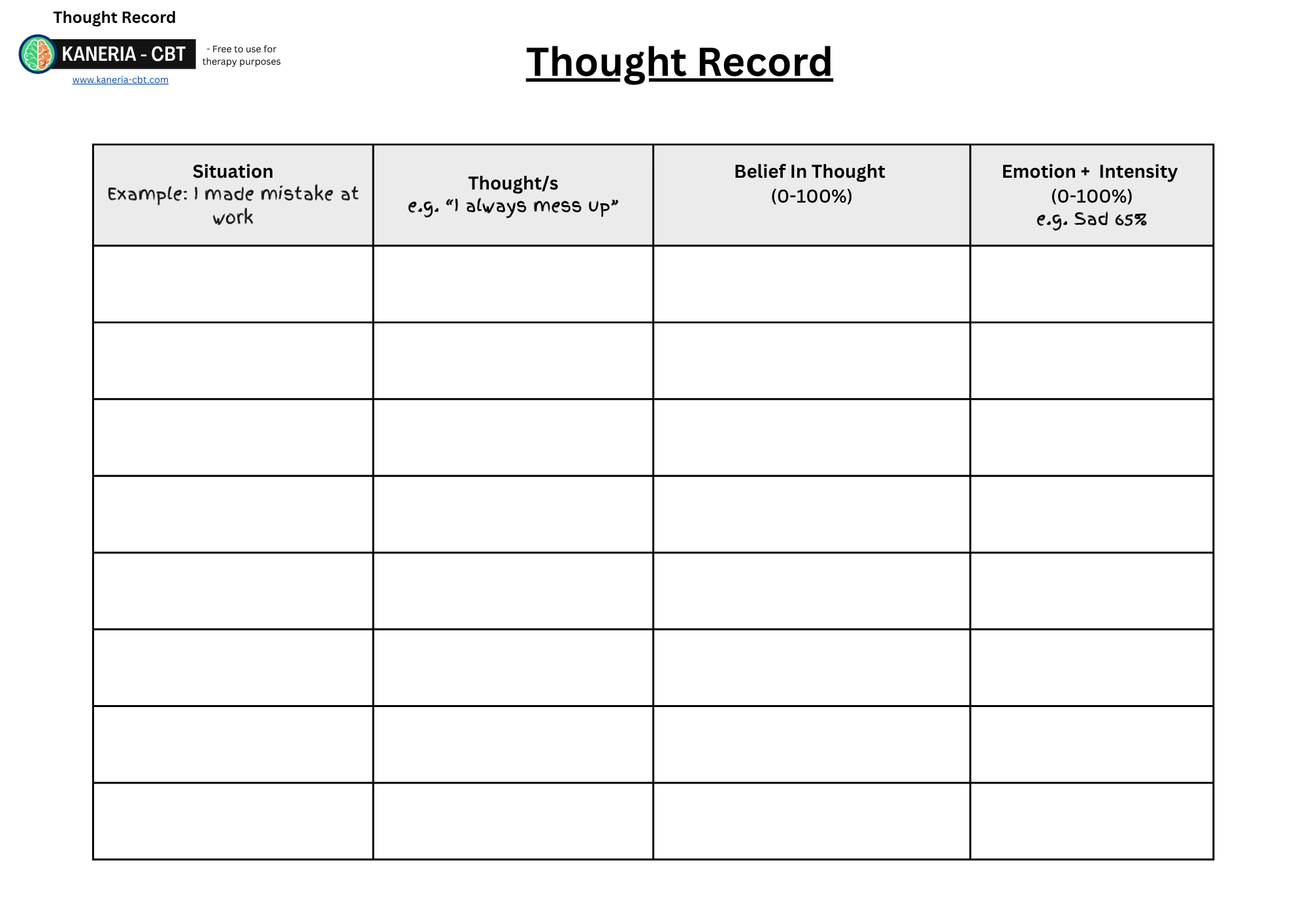Emotion felt: The patient should aim to record their emotions. This can help the patient see a link between their thoughts and feelings.
