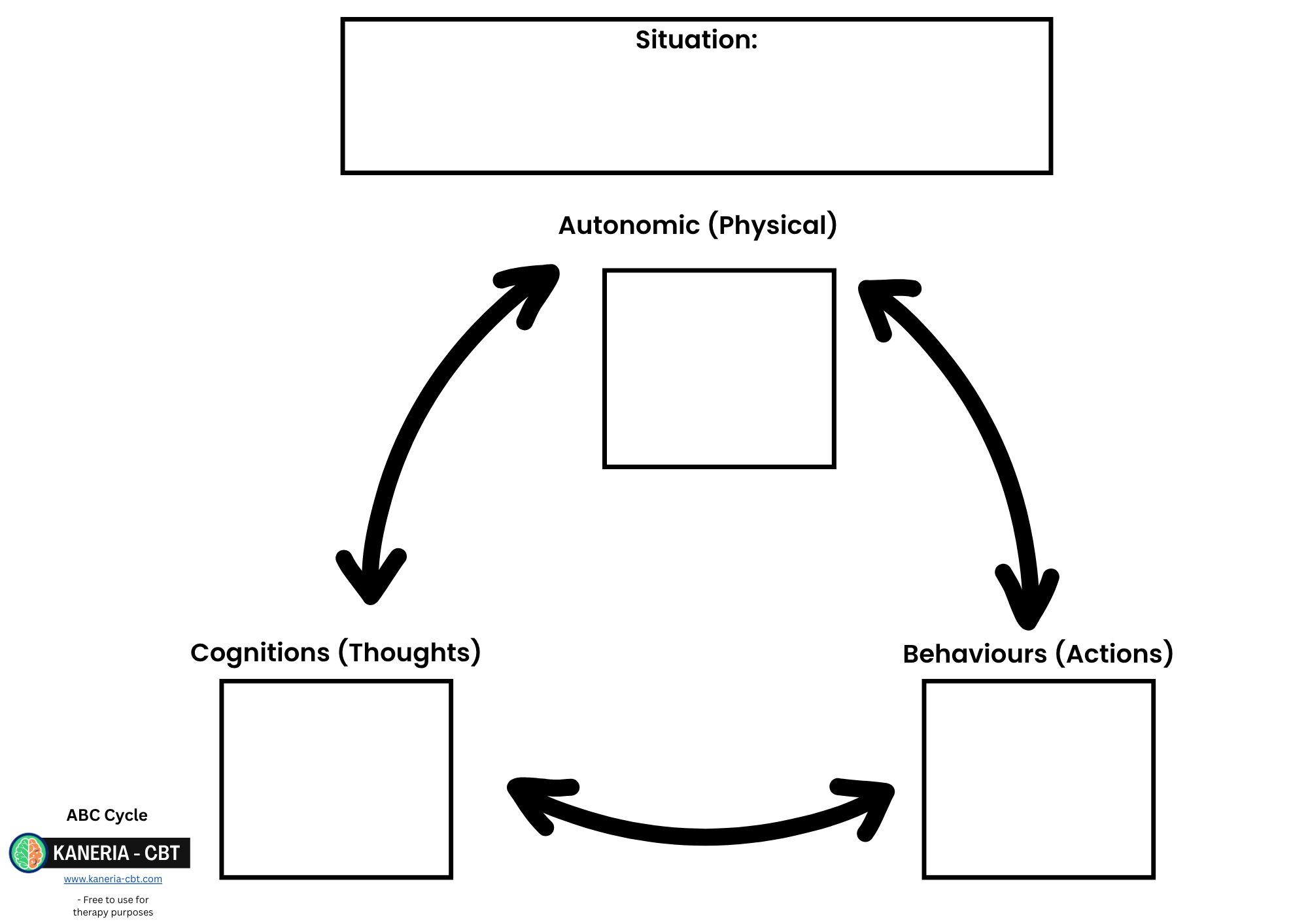 The first step should also always be an ABC cycle or five areas model. Place more emphasis on the cognitions in this cycle.