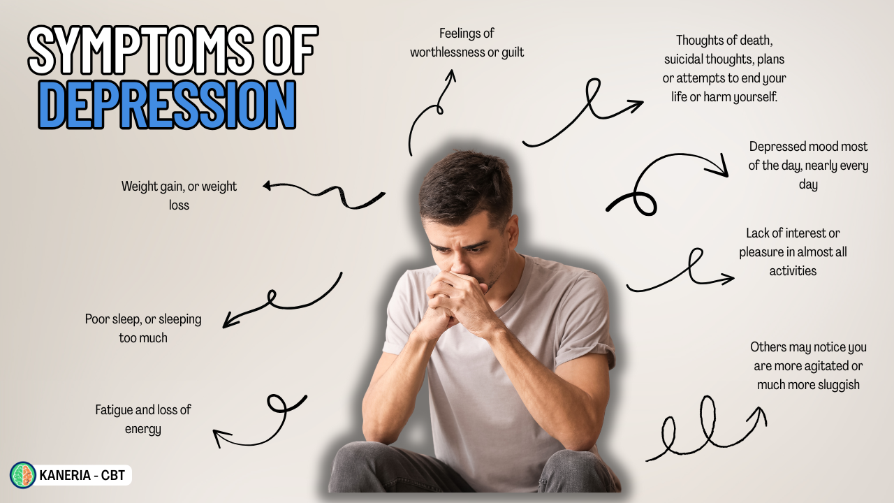 3) The way we think - Depression causes us to have more negative thoughts. These can be about yourself, your situation, the world or people around you or it can be about having a negative view of the future. You may even start to have thoughts of death, suicidal thoughts, plans or attempts to end your life or harm yourself.