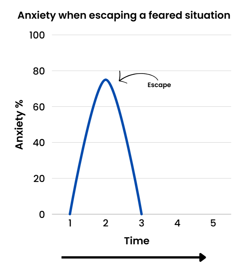 This can be demonstrated with a graph that indicates that anxiety quickly spikes but reduces rapidly when escaping a situation.